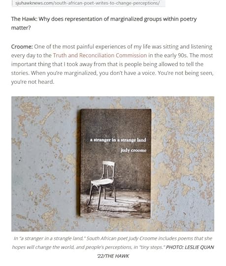 South African Poet Judy Croome Writes to Change Perspectives: An interview with The Hawk newspaper