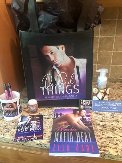 ✅ A reusable Do Bad Things Bag✅ A Signed Print Copy of Mafia Heat: VincenzoA Clark Brothers Mug✅ Waiting for Max Magnet✅ Bookmarks/pens✅ Bath and Body Works Hand Soap and Sanitizer✅ Signed Swag