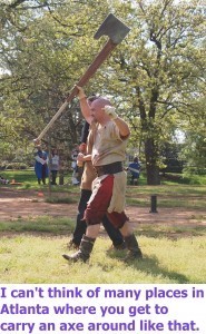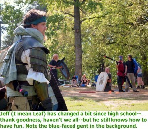 If you’re not familiar with Dagorhir, it’s basically a group of folks who gather in local parks, dress up like medieval or fantasy warriors, and pop each other with sticks for a couple hours. Through the miracles of Facebook, I recently learned that a former high school cohort does this nearby.