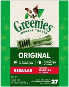 Greenies were rated best overall. I have used them for my dogs for years. They have X shaped ridges, which scrape away plaque to the gumline, and thus prevents odor. Again, the mechanical removal of plaque is key, and they do not mask the odor, but intend to rid of it. Greenies mainly contain minerals, vitamins, glycerin and wheat flour.
