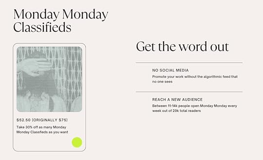 P.S. A final note on no annual pricing for Monday Monday. After talking to a few peers I decided I wanted to keep the pricing the same for everyone, not reward people with more cash in hand to get a deal. I also like that it lets me pause or stop when I need to without promising too much ahead of time.