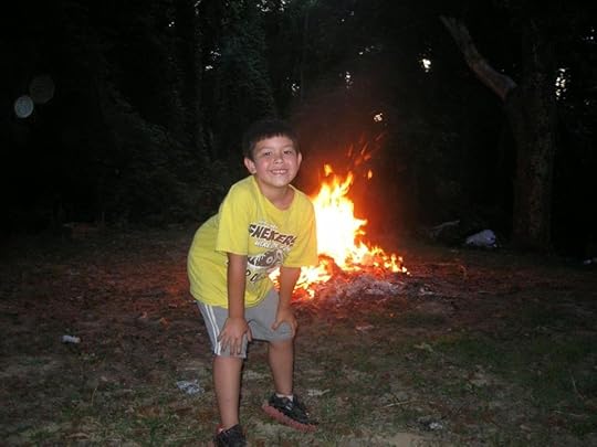 We live in a rural area so when he is here visiting we have fun inside and out. With large trees in the yard and limbs that fall a bonfire in not only fun but clears and cleans the yard. A few hotdogs and it is fun for all. There is also wooded area around us with wild life. He has been told he can never go into the woods alone. He has gone with his Papaw and seen many animals and they even take some pictures of them. We often get ideas to write from things that we know. His story is about two young children who were not allowed to go into the woods alone but did not listen. They did not think it would hurt just that one time. He can describe the woods and what it looks like from memory of the times he and Papaw explored learning about many things found in nature at the same time.