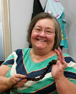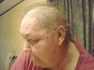 Yesterday was wonderful as my daughter and grandson came a day early to surprise me for my birthday with a fantastic cake they made together. We enjoyed the day and it left me with a smile. I mentioned that my hair was really thinning from the chemo treatments.Last night my scalp seemed to itch and burn a bit all night long. I tossed and turned and when morning came felt something very odd. I seemed to have my hair standing on top of my head in a lump. I started to brush it out and it came out and kept coming out. Most of it had fallen out and was tangled with the few strands left.It is an odd feeling even though they told me this would happen. Since I was a teenager my hair has been long. It has been very long.