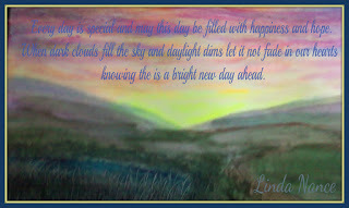 In the last few days I have looked out the window and see the leaves that were once vibrant green turn to golden colors and now rain down brown and forgotten for this year leaving the trees bare and almost dead looking silhouetted against the sky. I sort of felt like that. I had once been filled with life and now struggle to stay alive. There have been times I felt more dead than alive. The days have been dreary and filled with rain as in my heart I have felt tears like the rain drops outside. The rain brings water to sprout new life in the Spring. The tears today quickly form to make a determination for life to come. It will be Spring this time next year before I am though with the treatments and it will be time for flowers and new life.I feel bad I have been unable to get the book of Art, Words, and Inspirations done before Christmas. I thought it would be such a beautiful gift to not only give a book but the hope for the future to see beauty and life. Now I accept I am limited on the time and things I can do. This is taking me so long to do but I want to share the feeling, ideas and hope.I feel more peaceful now than frustrated with the book knowing what I want to create is something to share any day any time and its time will come. Right now I think of all the love and care others have shared with me. I see the internet and even as I sit here inside, the world has kept me company. You all have reached out and touched my heart. One friend fixed a meal you would not believe with enough I had a variety for days after my other chemo treatment. Family and friends have been so loving and caring. How can I stay sad for long?Tomorrow I go for another round of chemo and I know know how very sick I become. At one point I really feared I would not see another day and felt so desperately ill I did not mind except I do not want to leave those I love and do feel I have so much more to do in life. Every day is special and this birthday is one I will remember.....a new day....new hope....and time to fight to live for all of the tomorrows.