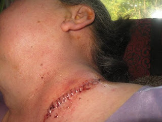 Icould hardly believe it when they again had no live tissue toexamine. They explained that the type of cancer I had was extremelyaggressive and fast growing. It was so much so, that the tissuereachable was dead as the cancer cut off the blood supply to theupper tissues. My heart sank, thinking how quickly my life wasending. Every day I felt closer to the time when there was no hopeleft. Before I could even begin the first surgery I had to workmaking sure the respiratory would survive the anesthesia. Thepulmonologist, cardiologist, the endocrinologist and now Dr. Woodwardall worked together trying all they could to help me. They said itwas the first time ever it took 4 biopsies and two surgeries to get adiagnosis of the cell.