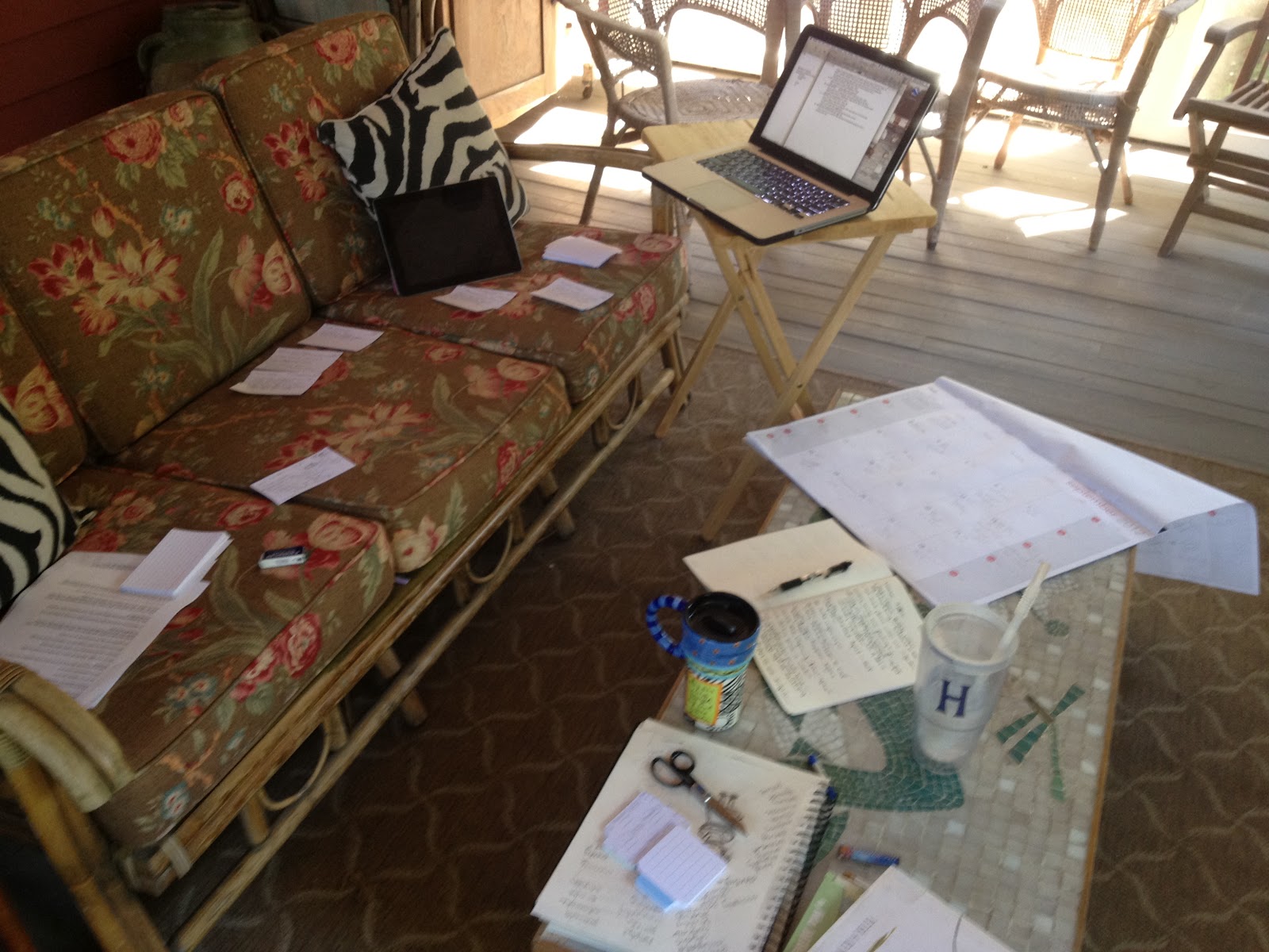 This is my screen porch, and we've been blessed with fall-like weather for the last few weeks. My agent is very editorial (which I love), and on her latest read of my novel, she noticed something. The timeline just didn't work. I needed to compress it down from ten months to four-ish.