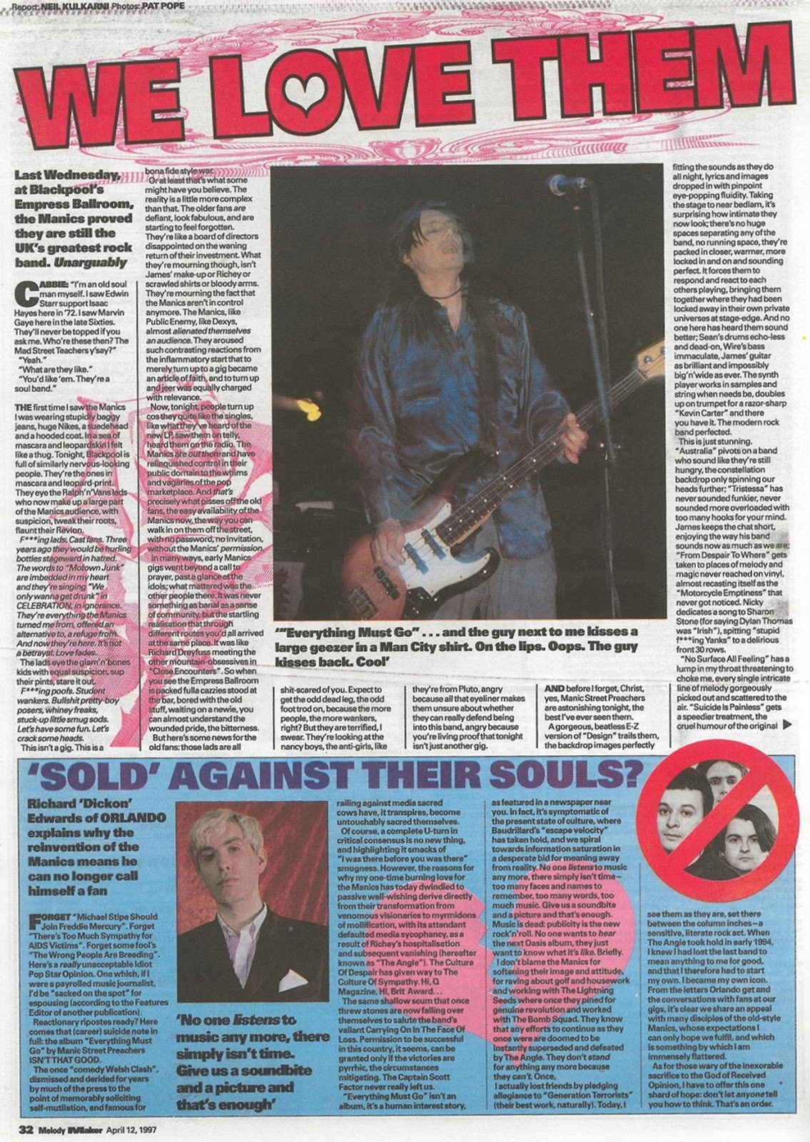 WE LOVE THEM: MANIC STREET PREACHERS, Live Review. Empress Ballroom, Blackpool, 1997.