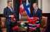 Presidentti Stubb lahjoitti pääministeri Carneylle Carl Brewerin HIFK-pelipaidan ja sai vastalahjaksi Nikolas Matinpalon Ottawa Senators -paidan. Kuva: Matti Porre/Tasavallan presidentin kanslia