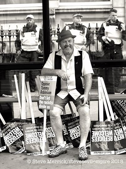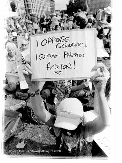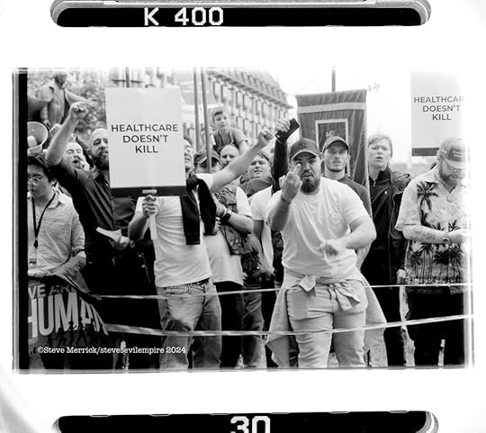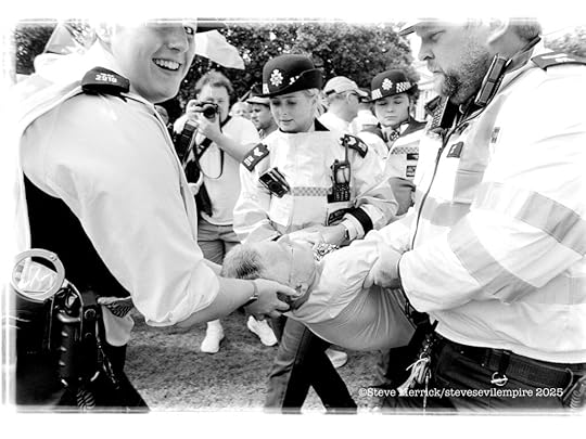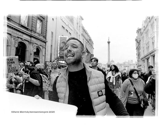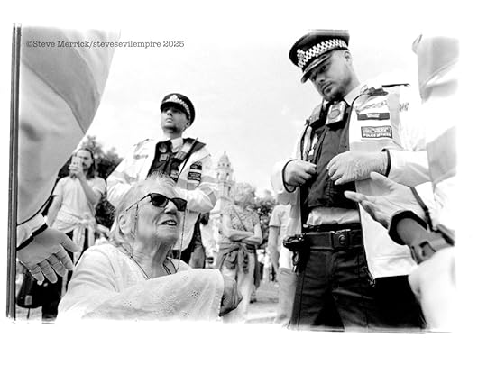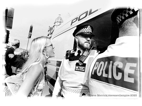 There are a group of pro Palestinian activists called Palestine Action. (PA) they were recently proscribed as a terrorist organisation after they spray painted a bunch of Royal Air Force planes. To the best of my knowledge they have never actually killed anyone or bombed anything. Putting aside this weird decision regarding a graffiti protest, and that the British government seems to think that tagging is a terror attack, lo and behold supporting them became illegal. Which resulted in yours truly photographing the Metropolitan Police getting there mass arrest choreography perfected by arresting just shy of 500 people on parliament green in a single day. Everyone arrested held a hand written placard that said. “I oppose genocide, I support censored censored.” Now I am not really sure if writing the words on the placards is illegal or legal, but that is a freedom of speech restriction, and in regards to Gaza there are a load of chants and speeches that are now illegal to utter. The fact that the entire PA campaign made Kier Starmer look like he was giving a thumbs up and announcing “Genocide is good for you.” Is at this point not illegal to point out. Yet the week after I was confronted by Danny Bammo, who is Tommy Robinsons right hand man, he was trying to rile up some anti Trump protesters by telling everyone that “Violence is coming to your shores, you cannot hide from us, we will take our country back by force, we will storm parliament and take the country over.” Seriously it went on and on and I was left with the impression we were all going to be murdered in our beds, in fact it was more a tragic metaphor of losing your grip on realty than scary. The real point here is that a polarised racist extremist can threaten everyone legally, whilst a hippy grandma cannot oppose a foreign genocide. Is that evidence of polarisation? Or is there still hope we can steer clear of those extremes?
