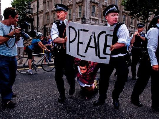 Children playing football on top of a mass grave, dug after the 1982 massacre Sabra and Shatila refugee camp. Beirut. Lebanon. 2000. Photo by Steve MerrickWe even have memes for it all, one of them is that. “Violence never works.” Well tell that to the Taliban, or any military and watch them shrug knowingly. Violence does work terrifyingly well for the record, in the West we may deplore it but look at the number of regimes worldwide employing it daily. Then look to our own recent track record in bombing things and people. It gets even worse elsewhere and that is pretty evident from what is happening in the Gaza strip and Israel right now, or the Ukraine. Violence. Both Hamas and the IDF (Israeli Defence Force) are very good at violence, but neither really recognises the civilians caught up in their battles. Hamas rampages and kills over 1400 civilians whilst the IDF death toll in Gaza could be topping over 8000 last time I looked. Yet the main argument is can you trust the figures Hamas/Gaza medics are releasing. Casting doubt on casualty figures hides a depressing reality, when bombs are falling left right and centre, continuously, then the casualty figures seem very light to me. If a building collapses in London and in spite of Government cut backs on emergency services we would be able to rescue those underneath it, and tell you who has been killed and injured. Gaza is not London though, the rescuers would be under fire and probably unable to do as much as they would want to, how many unknown are there under all that rubble as entire built up areas are destroyed. I don’t know and nor do you.