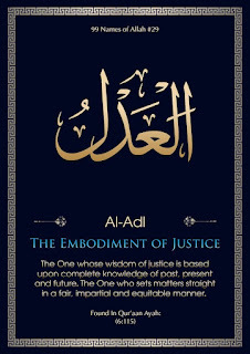 In trying to understand the source of my grief, I settle on the name of Allah, Al Adl. The Just. Though actually, it means Justice in its entirety. Allah is Justice, the source from whence Every Aadil exercises