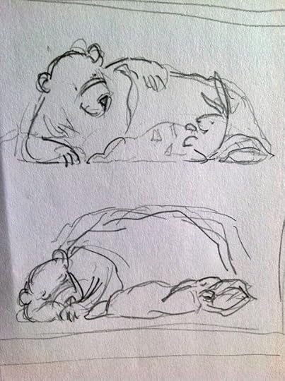 The title for Sleepover with Beatrice and Bear went through a number of changes. At one point, it was called The Great Hibernators -- below is a rough sketch for a possible cover: