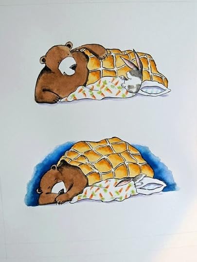 When I started working on the final art for Sleepover with Beatrice and Bear, I had big plans to document every step so that I could share the progress afterwards. It didn't quite work as well as I had hoped: once I started painting (and re-painting) it was hard to remember to stop and take pictures. Also when working on deadline, the need to make sure paintings got done by a certain date/time would take precedence over everything else. Before I knew it, I had skipped taking breaks to photograph my progress.