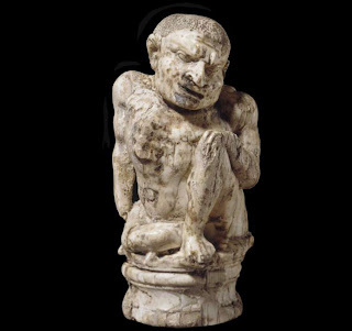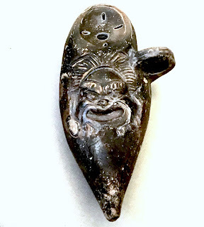 3. Why would you put a scary actor’s mask on a baby feeder? I believe the answer is that it is apotropaic (turns away evil). A face like this, possibly called a mormolukeion, keeps malicious spirits from turning the milk sour. This becomes an object of life or death importance in my book Escape from Rome. Find it in the room next to the Greek and Roman life room, in room 70 and display case 14.