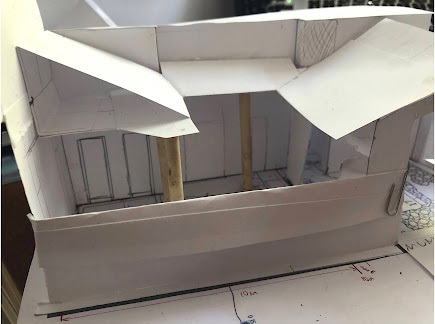 Model of Vatia's garden by Laura Jenkinson-BrownThen in came Laura Jenkinson-Brown, our amazing Classics teacher by day and illustrator by night. As she began to draw the scenes, this raised a myriad of new questions. How BIG was a wheel of cheese? What does a wineskin actually look like? Where would the shadows fall in a west-facing dining room? Laura went as far as constructing 3D cardboard models to better depict some of the scenes and even persuaded her delightful husband Sy to pose with soft toys while she sketched the characters.