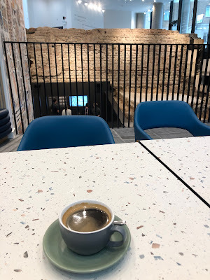 Senzo coffee overlooking City Wall at Vine StP.S. When you leave the building look out for Stop 4 on the London Wall Walk. It is one of a dozen remaining tile plaques that will take you on a pleasant treasure hunt around the City to see the other surviving remnants of London’s Roman wall.