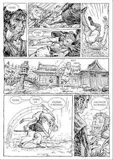 Não tenho a certeza daquela parte "sou druida, ela alquimista". Gostei de ter esta ideia mas eu conheço as personagens, por isso achei fixe. Estou a recordar-me do Stephen King: "kill your darlings". A ideia é boa mas está mal encaixada na cena. E se retirar essa ideia, o ritmo da cena até fica melhor. Fica aqui publicada nesta versão. Mais tarde, quando terminar as cores logo vejo se é para ficar.
