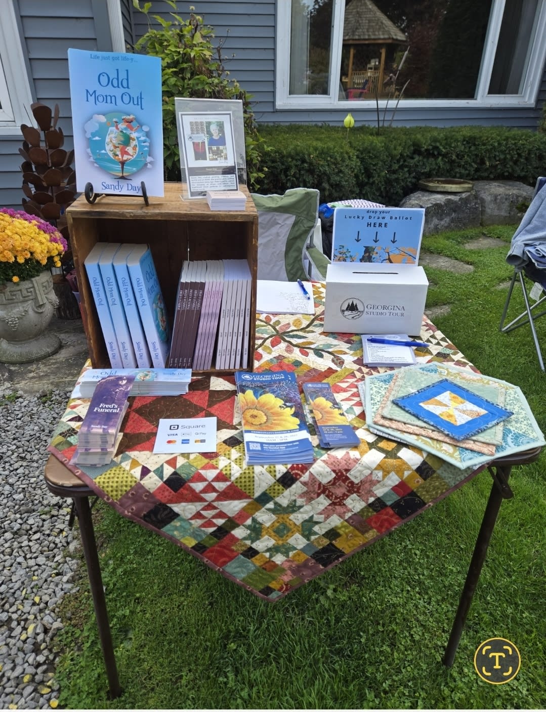 The woman holding Odd Mom Out with its bright, perky cover asks this like she’s identifying a suspect in a lineup. I've been standing by my sister’s quilt display at the Georgina Studio Tour for approximately forty-five minutes, jet-lagged and frazzled after thirty hours of travel from South Africa with my ex-husband, and already I regret setting up my little stack of books on the cash-out table.