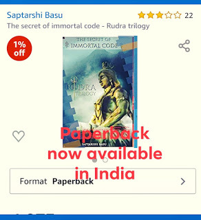 At last ! Got the paperback ( hard copy ) of The Rudra Trilogy ...though my novel was long in print but e-print. ( 1st published in 2014 as e-book , it has sold over 70K Copies all over the world and also been selected in Amazon Prime Reading which is the reading version of Amazon Prime videos )