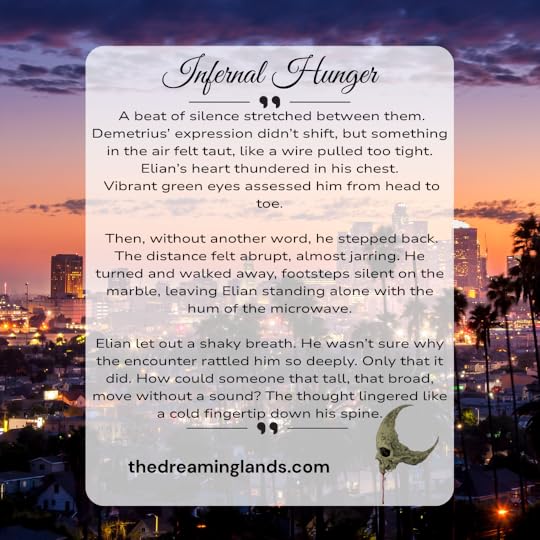 The cover for Infernal Hunger will be revealed in May! Shye is working now to finish the last 3 pieces for The Eldritch Reckoning,