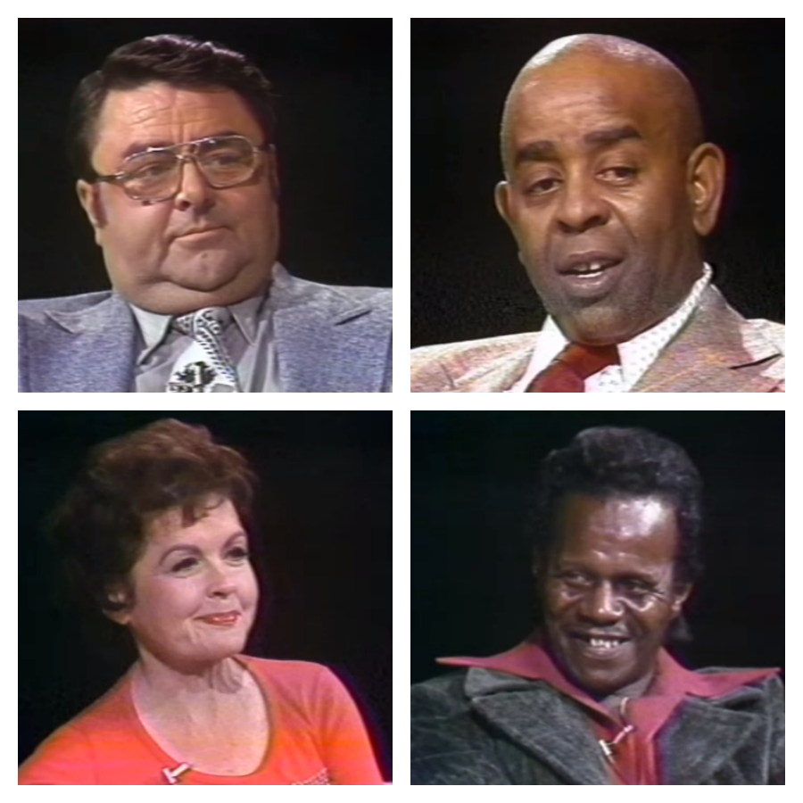 You know who's who. (YouTube; collage by the author.) Months after posting about Our Gang/Little Rascals imposter Freckles, I'm following up on the fake with the real deal: George "Spanky" McFarland, Matthew "Stymie" Beard, Darla Hood, and Billie "Buckwheat" Thomas get interviewed by Tom Snyder on the 11/12/1974 broadcast of Tomorrow (here).Though fun* and informative it's also sad to watch, especially when one knows Stymie, Darla and Buckwheat will all be dead within seven years after the show's taping. (Spanky made it to 1993.)
