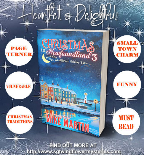 CHRISTMAS IN NEWFOUNDLAND 3Author: Mike MartinPublisher: Ottawa Press and PublishingPages: 160Genre: Mystery/HolidayFictionFormat: Paperback / Kindle / FREE on Kindle UnlimitedBook Description:Sgt. Windflower loves Christmas and we’re happy to share what he and his family and friends do at Christmastime in Grand Bank or Marystown or Ramea, Newfoundland. Some of the stories feature Windflower and Sheila’s adorable daughters and of course Eddie Tizzard and his family make several spotlight appearances. Other stories take you back to Christmas seasons of many years long past and there’s even a return of a fabulous Newfoundland tradition, the Mummers.