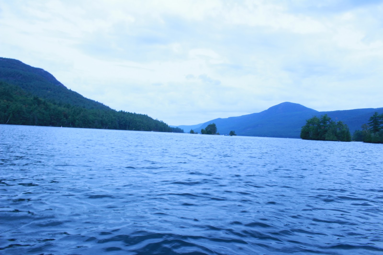 We rented canoes and kayaks at Bolton Landing then we headed off across the lake to our own little island to camp. The weather forecast was for rain, but we made it to our island no problem. The boat traffic was light on the crossing which was nice so we only had a few choppy wakes to plow through.