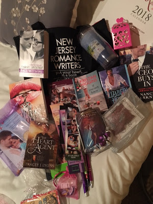 I recently attended the New Jersey Romance Writers Conference. There was a bunch of books and book swag for the taking so I did a one for me and one for  one lucky contest winner.