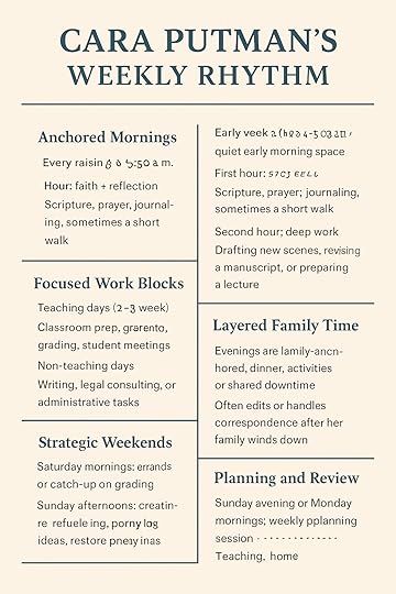 ChatGPT said:That’s a great question — and one many readers and students ask her! From interviews, talks, and posts she’s shared, here’s how Cara Putman manages to balance being a professor, lawyer, author, wife, and mom — without losing her creative drive.