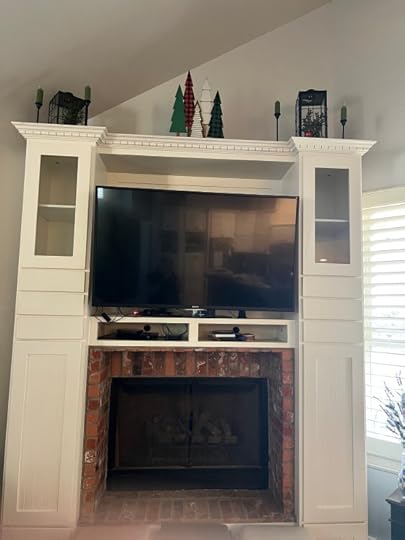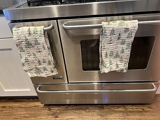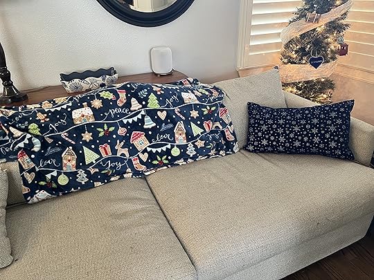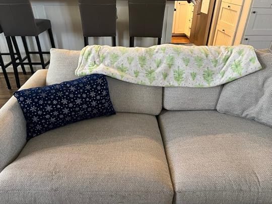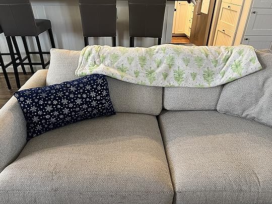 I don’t do a ton of decorating, but I do like to change out my seasonal stuff above my TV/fireplace and put up the tree and stockings. I have a couple of winter/Christmas throw pillows, blankets, and kitchen towels. And mugs. I switched out most of the mugs for Christmas ones!