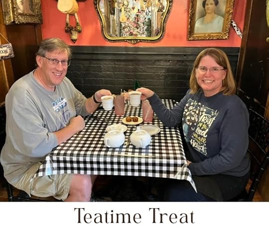Another was making time for a stop back in downtown Springfield at Gilmore’s Tea House. We had tried to eat there the day before, but they had been closed. So I twisted my hubby’s arm to try again as we were leaving town, and it was open. We enjoyed delicious tea, a fantastic lunch, and even splurged on some of their decadent cake for dessert (half of which we took with us for later).