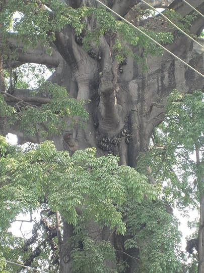 The tree is associated with myths and mysticism in Sierra Leone and is often the subject of artwork. It is home to bats and vultures. Sarah arrived In the dry season, when the tree sheds its leaves. The picture you see was taken during the rainy season when the tree is quite lush.
