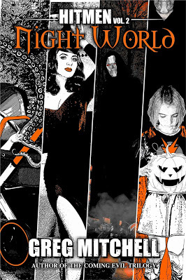 Today, Genre Experience proudly presents my latest novel NIGHT WORLD, Volume 2 of my HITMEN saga. The book is available for purchase on Amazon in print and digital. As with the previous volume, this book is a "braided novel"--four novellas that interconnect (in this case, VERY heavily) to create a larger story. NIGHT WORLD is a celebration of monsters, fantasy, childhood, spooks, thrills, and all things Halloween.