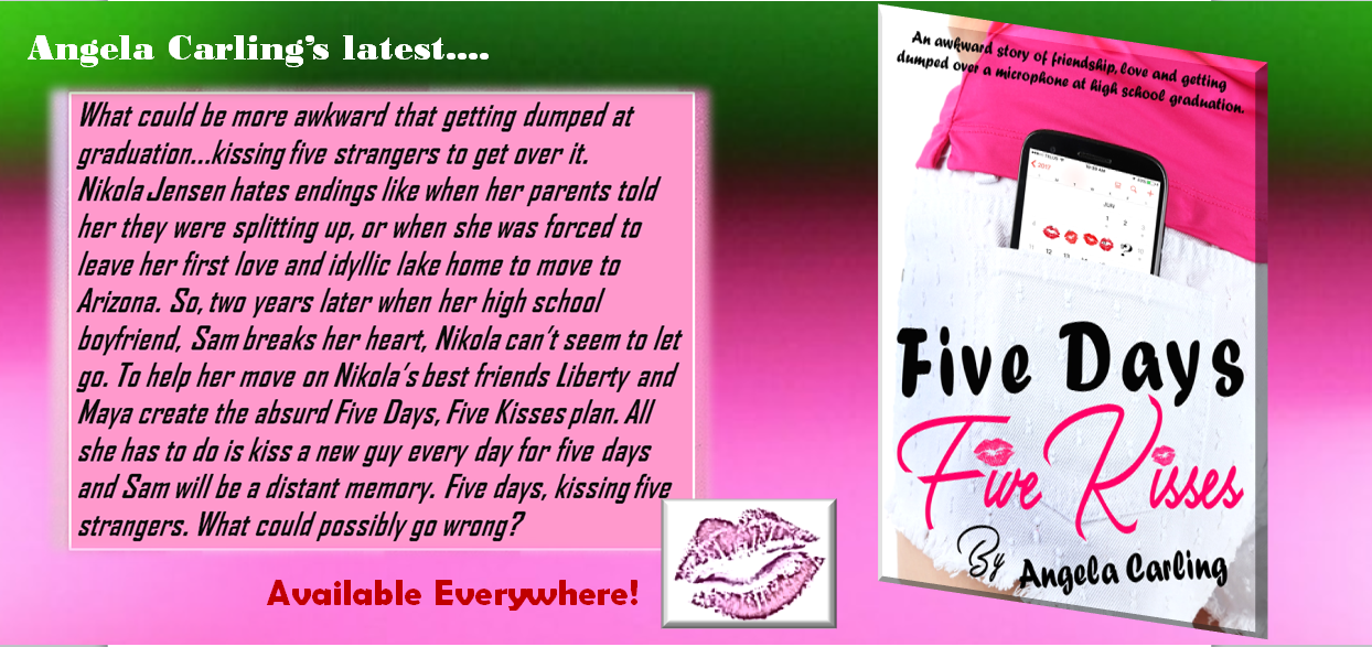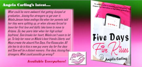 As for me...back to writing. I'm working hard on the second book in my Kiss Series. Book 1, Five Days Five Kisses has been doing really well.