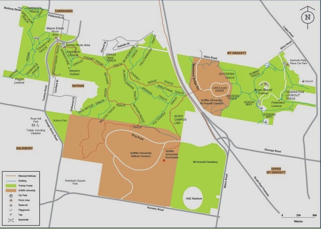 Toohey Forest used to be huge but it isn't now. It's a remnant of around 260 Hectares (642 Acres) in the middle of Queensland's capital city. The area has wide walking tracks to encourage people not to walk just anywhere and upset the ecology. The best thing about it is there are pockets in the middle where you can't hear any traffic. For all intents and purposes, you really are in the bush--you just have to ignore the wide man-made paths and clear signage.