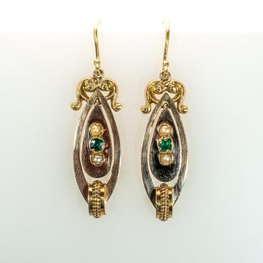 They’re nothing special (look at those awful settings around the stones) but to me they’re intensely special. My grandfather gave them to my grandmother in 1919, and then he died in the Spanish Flu pandemic. She gave them to my mother. My mother gave them to me. I wore them for my wedding and wished I hadn’t, because they had old-fashioned screw fittings that just about killed my earlobes. We think they’re Italian.