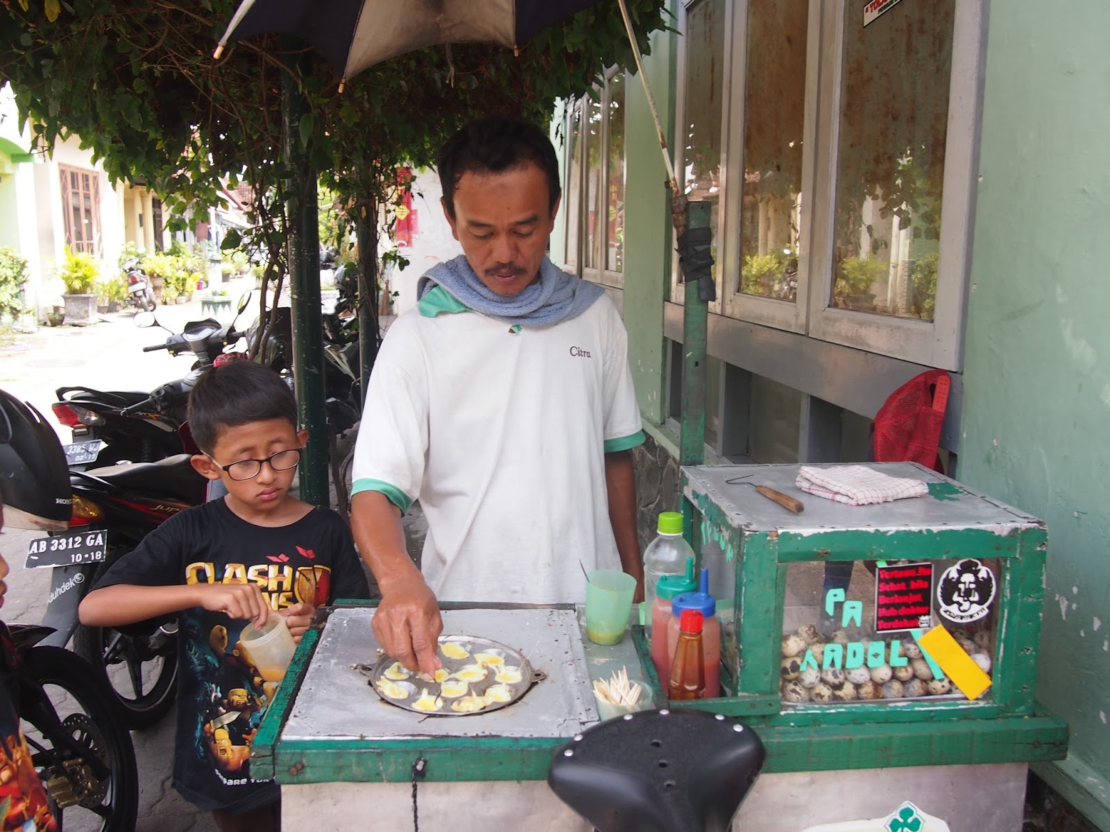 Aku sengaja memilih lorong belakang ketika sedang melilau di Jogjakarta. Ini persimpangan dari Jalan Ahmad Dahlan. Di setiap penjurunya melantun-lantun bacaan Al-Quran oleh anak-anak Muhamadiyyah.14. Telur puyuh digoreng dadar.