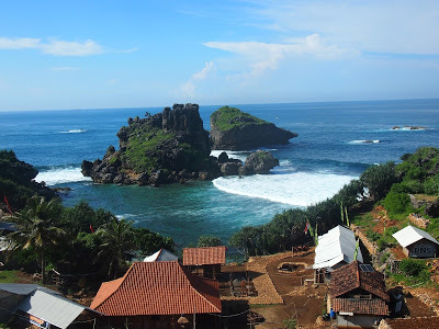 Serentak itu motor kami keluar daripada hutan dan apa yang terdampar di depan mataku menghambat nafasku; terbentang di depan kami adalah tanah lapang, jalan yang panjang dan lurus di sepanjang pantai, ombak-ombak bergulungan, dan gunung kehijauan yang menjadi latar untuk pantai yang hebat ini. Beberapa motor dan kereta menyinggah di beberapa perhentian untuk menggambari suasana. Mas Hendra memijak pedal dan roda motor berpusing laju lagi dan aku depakan tangan dan rasakan angin-angin yang melalui celah-celah jariku.