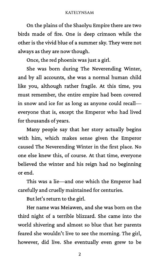 Exploring different cultures’ approaches to fantasy expanded my mind and imagination, and forever afterward changed my storytelling and worldbuilding for the better. Those who have read my stories may have noted that the worlds the characters inhabit often contain a blend of both western and Asian aspects, and I believe this is a unique and endearing element of my writing. This next novella I plan to release in the fall, however, will more closely resemble the ancient Chinese and Korean fantasy dramas I’ve come to love with all of their tension, romance, longing—and of course, magic 🐦🔥 ✨.
