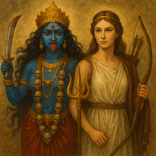 What binds them is their refusal to yield. They are guardians of feminine power—not as passive virtue but as dynamic, dangerous energy. In a world where female safety and autonomy are still contested, Kali and Artemis remind us that to protect daughters may require fierceness, not softness. Their myths endure because they offer not only fearsome warnings but fierce hope—for the right to exist, grow, and be protected in one’s own strength.~~TK