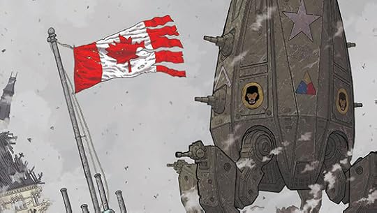 We Stand on Guard, a 6-issue mini-series penned by Brian K. Vaughan and illustrated by Steve Skroce in 2015, just got its trade paperback edition, so I decided to finally read it. The near-future story of war between Canada and America was a quintessential Brian K. Vaughan offering, with witty dialogue, fast paced action, and an exploration of some interesting themes enmeshed with international relations. Vaughan gives a passable explanation to the far-fetched notion of war between the US and Canada and that’s good enough for me.