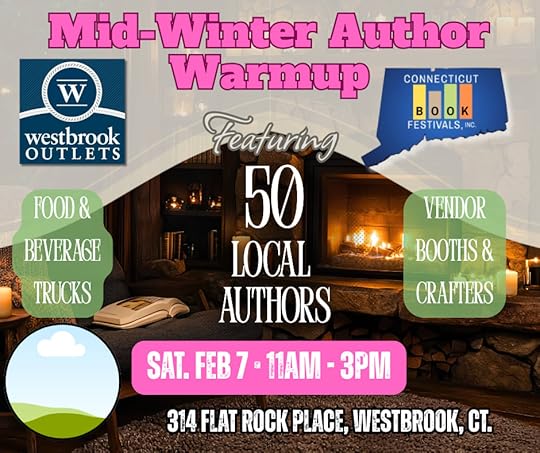 (Join me and scores of other authors, vendors, etc., at the Westbrook Outlets Mid-Winter Author Warm-up, Feb. 7 11:00–3:00, 314 Flat Rock Place, Westbrook, Conn.)