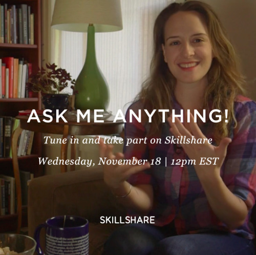 Incredibly I have never done an AMA before I don’t think? If you’re free next Wednesday you can go to Skillshare and ask me anything (about writing and publishing) (and what book to read next.)