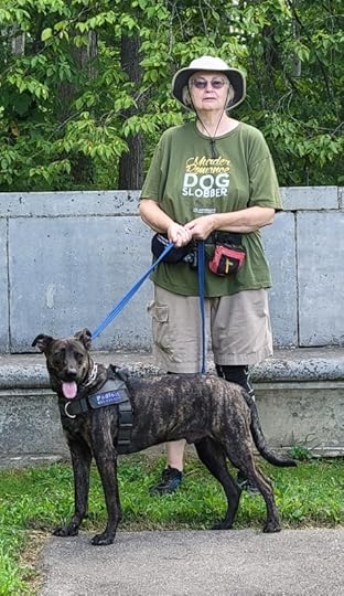 We’ve made a lot of progress. Last week Padfoot went to book club and he was great, even riding the tiny elevator with strangers. I took him to the neighborhood block party for a brief visit early on when there were only a few guests. He was friendly to everyone, if a little anxious.