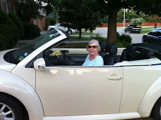 The other big bit ofnostalgia: my twenty-year-old, VW Bug convertible went away today; Three yearsago when I gave up my license—driving a Bug while using a walker doesn’t reallywork well—I gave control of the car to Christian, hoping he could sell it forsomething special for Jacob to use for college. That didn’t happen, but Jordandrove it occasionally (not with as much joy as I had). Then it wouldn’t passinspection, and then it wouldn’t start. So it sat in the driveway, a kind ofgrim reminder of a life I’d given up. Still, it was a comfort to me to see itthere. For sixteen or seventeen years, my identity was closely tied to thatcar. People all over the city knew where I’d been and what I’d been doingbecause they saw not me, but the car. One of my great joys when the Burtons livedin Hulen Bend was to put an Alex Beaton tape on (that’s how old the car was—a cassette),put the top down, and drive home from their house through the park, belting outScottish songs as loudly as I could. (I’m loud, but I don’t carry a tune wellat all). So there went another chunk of my active life. I tried hard not to seeit as symbolic, and Colin encouraged me to see it as a relief. I know Jordanwas ecstatic to get it out of the driveway. What’s next for my Bug? I have noidea. The body is worn, but the engine has under 40K miles on it.Me and the best car I ever owned.