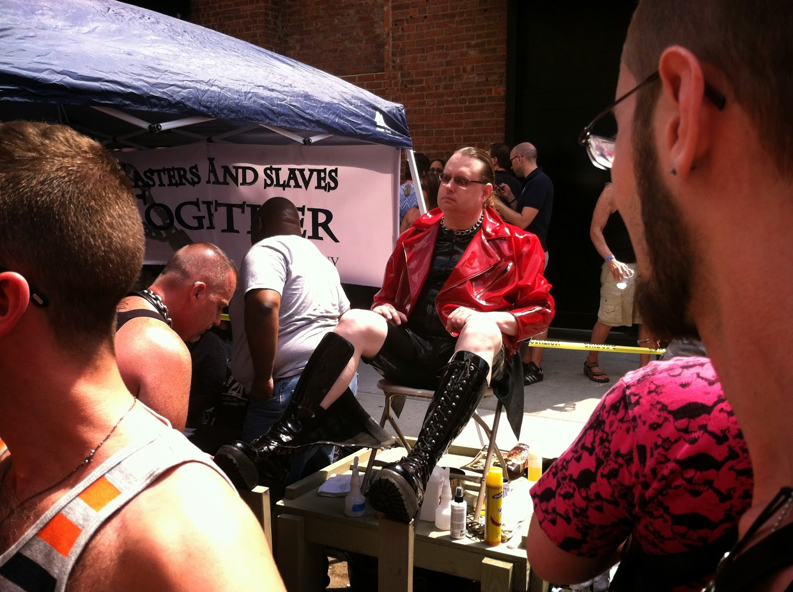 Folks, do you ever wake up on Sunday morning and think, "I just don't feel gay enough?" Or "You know, it's a white hot sunny day, it'd be great to see some barely clad old men in leather"? Or maybe just "butts"? It happens to the best of us. In fact, I was thinking all three of those things and more when my cat Stella woke me up this morning by slashing me across the neck. Thankfully, today was the Folsom Street East leather fantasia in Chelsea, NYC. When I found out it was happening, I rode my tricycle up yonder and took some photos so you wouldn't miss out. You're welcome.