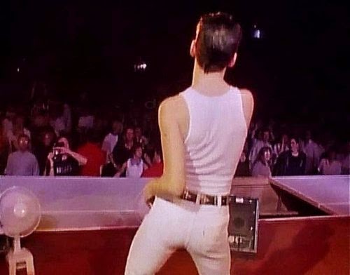 Now, there's not one person among us who has watched this band's legendary live show documentary Depeche Mode 101 and not come away thinking that David Gahan's butt has seen some serious man-action. Look how happy it is, wiggling all around like that. It was just bound to happen at some point, at least a few times, backstage, after the show, in a hot tub, while the other band members did each other's hair. But by all accounts, the men of Depeche Mode are all straight, which is one reason I've always had such shitty gaydar, because come on.