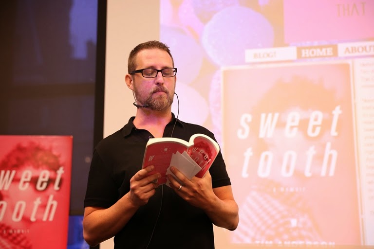 See? And I'm not even Lena Dunham! Now, you're probably asking yourself, "why isn't Tim signing copies of Sweet Tooth , his latest book for Amazon Publishing?" The answer is: well, apparently, Amazon Publishing doesn't see much value in having a booth at Book Expo, because why would you want to have your authors make appearances at a humongous trade show full of book lovers and book industry folks? So counterproductive! Better just to steer clear and hope for the best. So, yeah, no Sweet Tooth signing. :-(