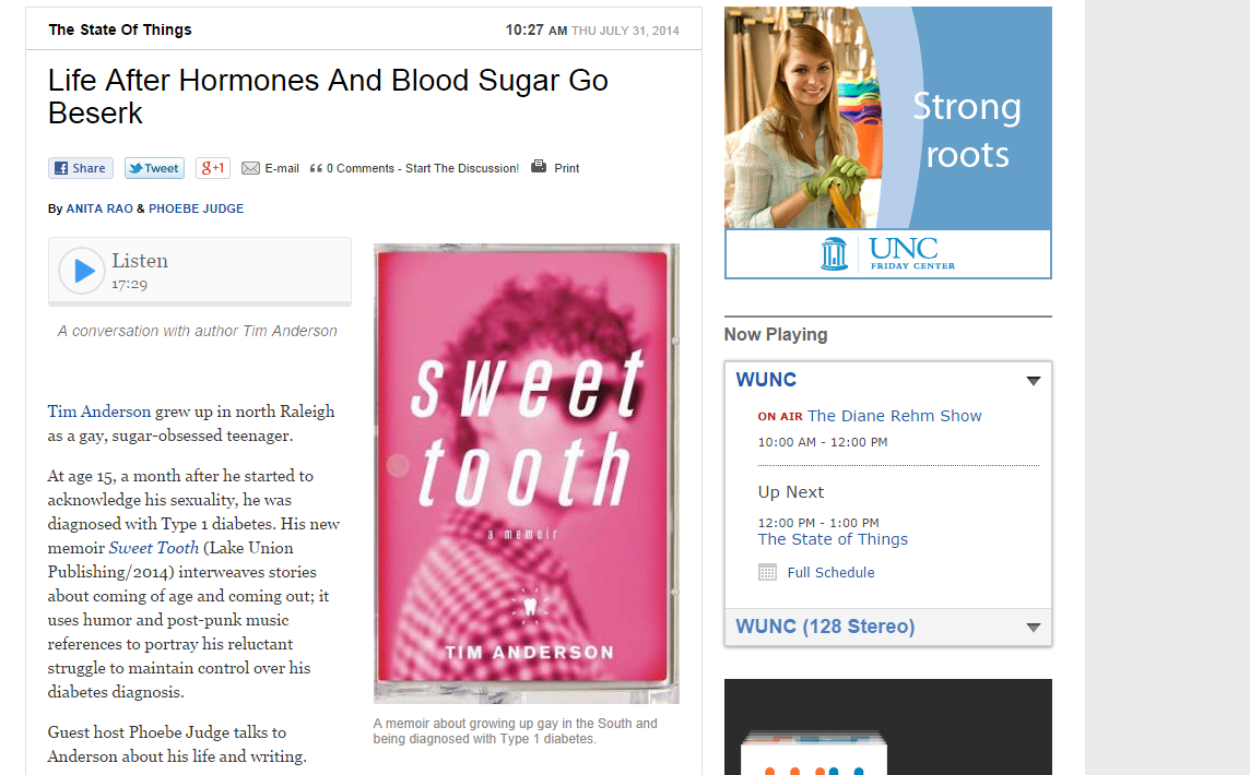 You guys, I did an interview with WUNC, one of North Carolina's NPR affiliates, MONTHS AGO and I never posted it, how irresponsible is that? I'm terrible. Anyway, WUNC's "The State of Things" kindly invited me on to discuss my book Sweet Tooth, and I didn't accidentally curse or vomit onto the microphone, so basically, I nailed it.