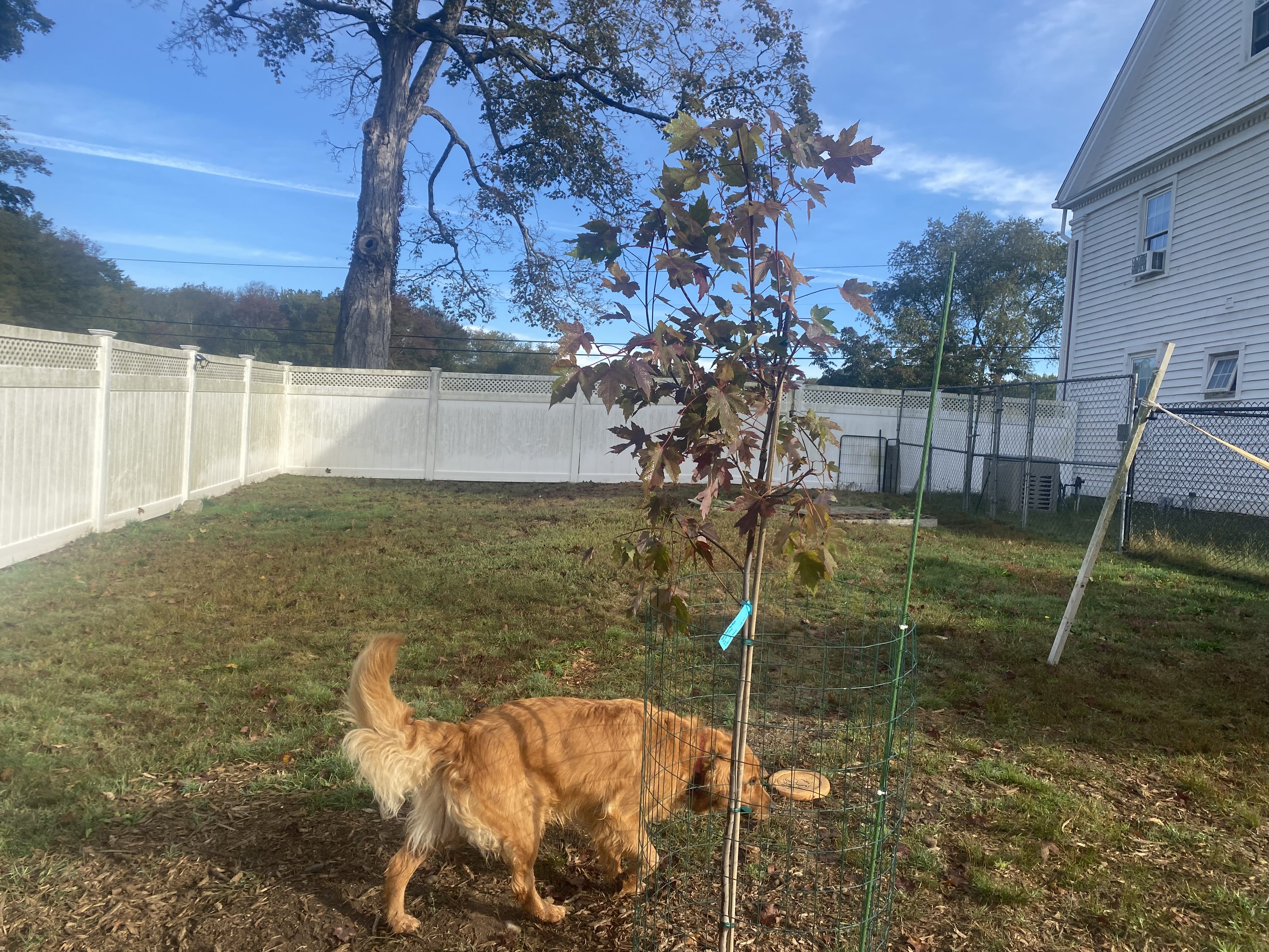 The new red maple, settling in The sight brought tears to my eyes, moved by how graceful the tree seemed and how perfect it was in our yard, as if it had always been there. I was still sad over the tree we lost, but grateful we had followed through with a plan that had at first seemed to me to be hare-brained and, frankly, not a little indulgent.